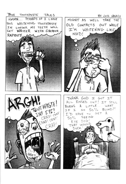 I finally went over to Marek's website and the man doesn't look anything like what I figured. Not that anybody ever does when you see their work before you see the person, but I half expected a being of pure light and goodness, and he looks like a regular guy to me. Odd. This is, obviously, a how-to book when it comes to making mini comic. I had a different method back in the day (yes, I once made comics. No, they will never see the light of day), but this one works just fine. Marek has a whole line of these little things, all basically touting the general awesomeness of mini comics, and more power to him. Spend about $5, get the lot of these for the artistic kid in your life, or just get this one if you want to know a simple, practical way to put one of these things together. If you're looking for death and destruction, you'll probably want to wander off to other pages on this website…