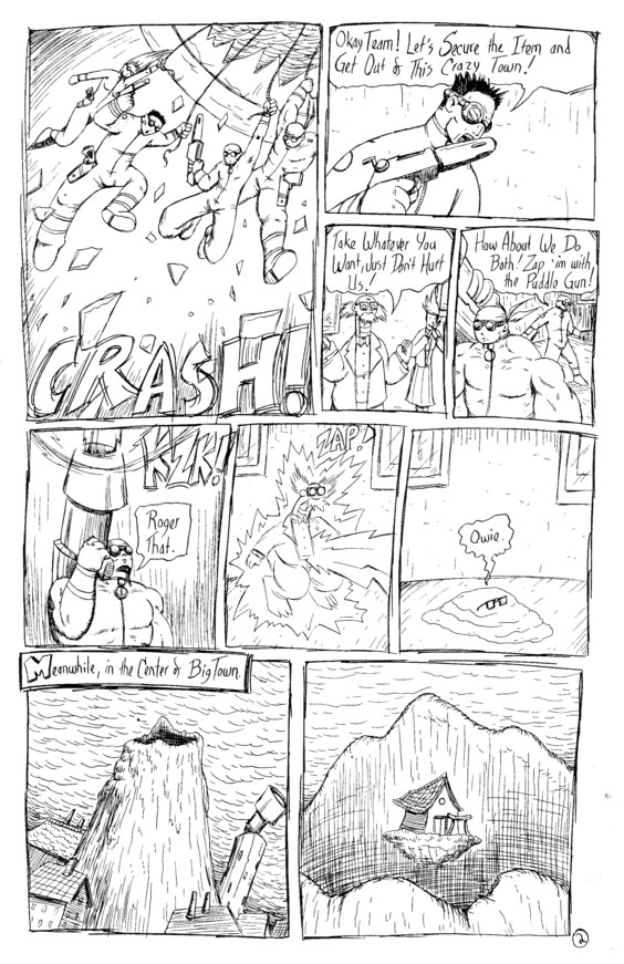 I'm breaking with tradition a bit in using the last page of a story for a sample, but I thought it was funny and the rest of the story was sheer blood and guts mayhem, and how do you only sample one page of that? It's a story about Cactus Joe the Clown, wandering around aimlessly with his… well, let's just call it a penguin wearing slippers. He runs into a couple of thugs who want to kill him for their master, they both change into monsters and let the bloody mayhem begin! Next you have a one page "author's aside", telling us a bit about the book, followed by a silly, cartoonish story about doing some farm work that seemed drastically out of place compared to all the violence. Of course, it's his book and he can do whatever he damn well pleases with it so who am I to say that a cartoon cat just looks odd next to a creature getting his legs ripped off at the knees? Next up is a wordless space fight involving something vaguely resembling the Silver Surfer (but only slightly) and a giant outer space fish. Next is more cuteness, so I guess I spoke too soon about it being odd, and finally Frimpy. I ended up liking the varying violent and non-violent stories by the end, so I'd say he's doing something right. If you like mindless mayhem mixed up with some even more mindless cuteness, check this out! Oddly, the website doesn't seem to have any way for you to buy his comics, but maybe I'm just missing it. Oh, and this issue I think was put together specifially as a sampler for cons, just so you know, and I think it was a measly quarter although I could be wrong on that one…